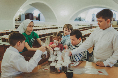 Мы тогда обратились к своим прихожанам. Последовал такой сильный отклик – словами не передать! Даже сегодня, когда вспоминаю – просто до мурашек! Кто муку нес, кто масло, кто сахар, спрашивали: «Военным?» – «Военным!» Люди несли и несли. Глядя на тот людской поток, нельзя было не испытать окрыляющее чувство большой единой семьи, сплотившейся в трудный час. Кроме того, воспитанники нашей воскресной школы «Глалоль Добро» стали настойчиво проситься в помощники. Твердили: «Мы хотим солдатам печь!» Я к сестрам (нас четверо занимается выпечкой куличей): так, мол, и так... Сестры в ответ: «Мать Ювеналия, ты сама знаешь, что мы день и ночь возле печи. Печь, миксеры – всё крутится, куда еще детей?» Но отказать ребятам было невозможно: разве мы не должны воспитывать в них чувство сопричастности к судьбе страны? У них огонь в душе горел! Составили графики, кто когда выходит – графики четко соблюдались. Дети приходили: муку просеивали, тесто катали, куличики возили, украшали их, упаковывали. Много чего делали, причем с полной самоотдачей. Ребятня семи-восьми лет тоже не хотела оставаться в стороне. Каждому малышу я твердо сказала: «Твоя главная обязанность – читать Иисусову молитву». И мы с сестрами увидели, как велика сила детской молитвы. При этом наши юные помощники приходили не на часок-другой, а на целый день, чтобы сполна прочувствовать, до пота, насколько это непростой труд. Утром родители их привозили, вечером забирали...