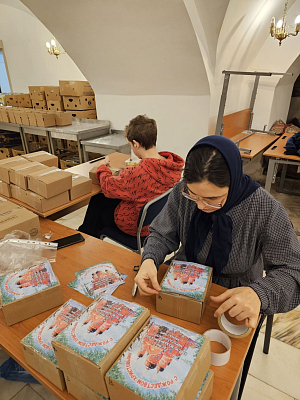 Практически с самого начала СВО. Монастырь сразу же принялся собирать гуманитарную помощь и искать координационные центры, через которые ее можно было бы организованно (и оперативно!) отправить нашим воинам и мирным жителям в зону боевых действий. Следующий этап был таким: узнав, что некоторые из монастырских прихожан самостоятельно, на личном транспорте везут туда продукты, бытовую химию, средства гигиены, необходимую технику и так далее, мы, испросив благословения у Святейшего Патриарха Кирилла, стали передавать свои грузы с хорошо знакомыми нам добровольцами, то есть примкнули к этим рейдам. А накануне Пасхи 2023 года мы вышли на волонтеров Народного фронта (проект «Всё для Победы»), и с тех пор у сестер обители с теми ребятами и их руководством на местах завязалась дружба, установилось сотрудничество. Если рассказывать по порядку, то ближе к концу Великого поста всё чаще в голову приходила мысль: скоро сестры и прихожане будут отмечать Пасху – с торжественным богослужением, колокольным звоном, куличами, крашенными яйцами, яствами на столе, а у ребят на передовой, что у них будет? Обстрелы и грязь на дорогах войны? Задумались: что бы им такое передать, домашнее, вкусное, чтобы и они порадовались? Решили испечь куличи.