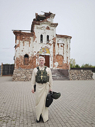 А в этом году в пасхальные дни мы наконец-то сами доехали до обители батюшки Зосимы в селе Никольском на Донбассе, которой оказывали помощь и прежде, поддерживая связь с экономом Свято-Успенского Николо-Васильевского монастыря отцом Диодором. Фронт отошел, противник от Угледара отброшен, но едешь – на обочинах дороги с двух сторон видишь большие «блины». Это противотанковые мины. Всё ими усеяно, настоящие «посадки» мин! Как-то смотрю: собака по полю идет. Говорю: «Что, если она наступит на мину? Цепная реакция пойдет, здесь всё снесет!» Меня успокоили: вес собаки – не вес танка. Хотя, добавили, всякое может случиться...