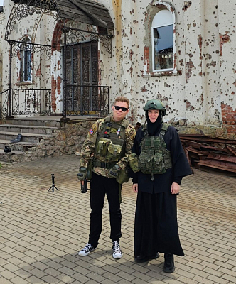Мать Ювеналия, на Вашей странице ВКонтакте есть фотография, которая приковывает к себе внимание. Вы с молодым волонтером Давидом Соколовым, впоследствии погибшим при эвакуации мирных жителей в Курской области, стоите возле израненного здания. Где это? И какие у Вас воспоминания о Давиде?