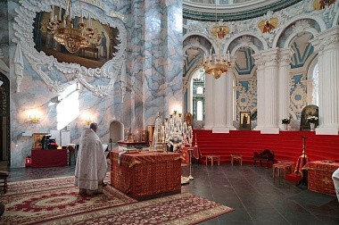 Сейчас вся братия живет за стенами святой обители, в помещении Воскресной школы, которая была построена в 1892 году. Тем не менее, богослужебная жизнь идет своим чередом. Стройка этому не помеха. В будние дни богослужения начинаются в 8 утра. Днем могут совершаться различные требы. Вечернее богослужение у нас в 17 часов. Третий раз собирается только братия в 12 часов ночи. Мы совершаем вечернюю молитву и полунощницу. Сейчас это происходит в братском корпусе. А когда мы собирались на полунощницу в храме, к нам даже присоединялись реставраторы ночной смены. В воскресные и праздничные дни порядок богослужений другой. Богослужения проводятся два раза утром – в 7 и 10 часов утра. В воскресенье вечером мы совершаем богослужебное пение с каноном святой мученице Татиане Римской. В нашем монастыре почти 330 лет находится великая святыня, которую сюда передала царевна Татьяна Михайловна Романова из запасников Кремля: ковчег со святыми мощами – десной дланью мученицы Татианы. Все годы эта святыня неотлучно пребывала в монастыре, даже когда он был закрыт и превращен в музей.