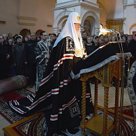 Да. Мы написали икону священномученика с житием. На ней можно увидеть и моего отца – будущего протоиерея Глеба Каледу, а тогда – мальчика, духовного сына священномученика Владимира. Юный Глеб помогал отцу Владимиру – относил продукты семьям «лишенцев», родственники которых были арестованы и которые голодали, и мы видим его на клейме, повествующем об этой помощи. На другом клейме иконописец изобразил мою маму, дочь священномученика Владимира, – она присутствует при его аресте. Духовным отцом священномученика Владимира был преподобноисповедник Георгий Даниловский – мы видим на иконе и его. С его именем моя мама приняла монашеский постриг в конце своей жизни. Мама ездила к нему вместе со своим отцом и очень почитала отца Георгия. Когда его прославили в лике святых, братия Данилова монастыря прислала за мамой машину, чтобы она могла поехать, поклониться мощам своего духовного отца. Ей подарили иконку с частицей его мощей. За полтора года до кончины мамы нашу обитель посетил схиигумен Илий (Ноздрин) и благословил ее на монашество. Я стала думать, как ее назвать. Решение пришло скоро - как же еще, как не именем любимого святого мамы – она с ним разговаривала, как с живым, смотрела на его икону и рассказывала все свои скорби... Мы обратились к Святейшему Патриарху с прошением о монашеском постриге и с просьбой благословить совершить постриг наместнику Данилова монастыря. Удивительно, что прошение было подано в день последнего посещения Его Святейшеством нашей обители, 28 октября. За 40 дней до его блаженной кончины, и именно 5 декабря 2008 года, в день, когда Святейший наш Владыка отошел ко Господу, архимандрит Алексий совершил постриг в мантию рабы Божией Лидии с именем Георгия – здесь, в дедушкином приделе. Промыслительно, что в этот день много лет назад она приняла Таинство Крещения.. Потом мать Георгия рассказывала сестрам монастыря о том, как познакомилась со своим святым, как маленькой девочкой сидела у него на коленочках, как брала у него благословение...