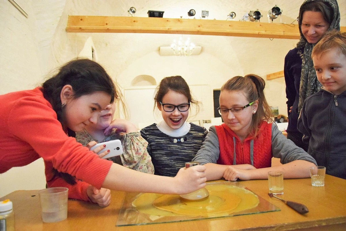 Но и сейчас ребята приходят в монастырь иногда не в воскресный день, когда проходят наши занятия, а в будни, просто так, небольшими группами, навестить меня после школьных уроков. Я в это время делаю росписи в монастырской трапезной, и дети имеют возможность посмотреть, как создается настенная композиция, помогают, держат палитру, наблюдают за процессом, задают вопросы. Я рассказываю им, как надо смешивать краску и проводить линии, а потом прекращаю работу, и мы идем пить чай. А иногда мы идем в храм, чтобы поставить свечи, и только потом – к столу. Время от времени я доверяю ребятам нарисовать какие-нибудь простые узоры на росписях не потому, что не успеваю, а чтобы у них остались приятные воспоминания, что они поучаствовали в важном деле. Это всё и есть, наверное, самые задушевные моменты в нашем изучении иконописи.