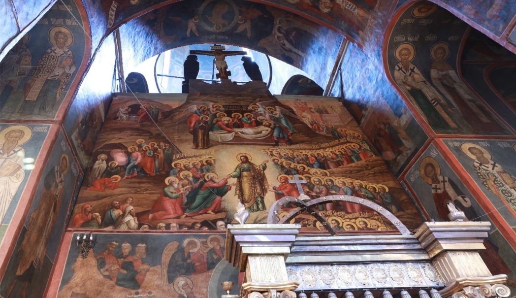 Когда мы находимся в древнем храме, на нас не давит большое количество фресок. Всё потому, что в древних произведениях очень правильно расставлены акценты: есть знаковые композиции, есть второстепенные, всё найдено по композиции, цветовому решению. Сейчас говорят – зачем ковровая роспись? Нужно учитывать то, что существует найденное решение, которое проверено веками, начиная с раннехристианских росписей катакомб. Святитель Григорий Нисский говорил, что Бог по природе своей – художник. А какой он художник? Он не скупой. Храм – это наш дар Богу. Как мы подадим его? Скупо ли? Разве мы этого хотим? Не обязательно в храме нужно одновременно смотреть на все росписи. Но бывает, например, момент, когда луч солнца попадает на какую-то композицию, и кто-то ее разглядел, и его это поразило и затронуло душу.