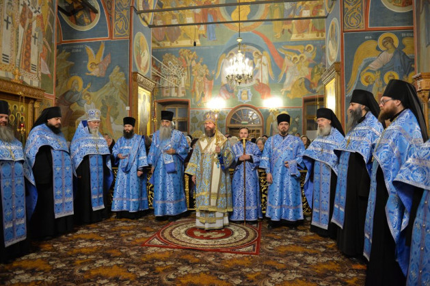 Семеро во главе со священноархимандритом монастыря, епископом Скопинским и Шацким Феодоритом. Владыка был первым игуменом после воссоздания обители. Он возглавляет наш братский собор.