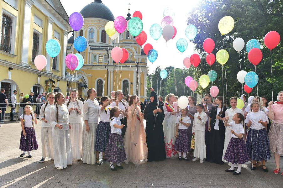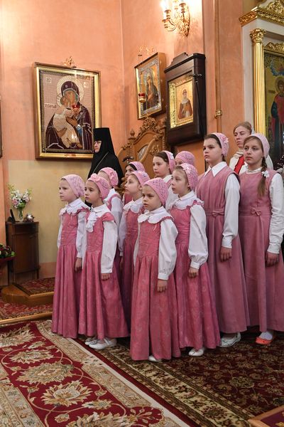 Девочки получают и хорошее светское образование, в том числе музыкальное. Учатся по программе общеобразовательной школы, а поскольку классы у нас небольшие, то получается почти индивидуальное обучение. На уроках труда овладевают навыками кройки и шитья, учатся готовить, что-то делать по хозяйству. В монастыре несут посильные послушания: в трапезной накрывают и убирают за собой столы, в храме церковничают. Занимаются вокалом, готовят выступления к праздникам обители: поют, танцуют и играют на музыкальных инструментах.