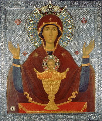 <На портале «Монастырский вестник» в материале «У нас здесь послушание Божией Матери – страждущих окормлять» можно прочитать о том, как взамен утраченной чудотворной иконы «Неупиваемая Чаша» была написана новая (и когда ее в мае 1993 года внесли в Покровский храм монастыря, освятили, Пресвятая Богородица стала являть чудеса от этого образа). А подробности о явлении первообраза иконы крестьянину Тульской губернии, заслуженному отставному солдату, одержимому страстью пьянства, описываются на вышеуказанном монастырском сайте.>