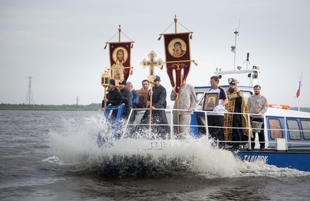 Начинался крестный ход в день памяти святых апостолов Петра и Павла Божественной литургией на Верхнем острове, где ранее был монастырь, основанный учеником преподобного Евфросина Досифеем Верхнеостровским. Затем крестоходцы обходили все дворы рыбаков, живших и на Верхнем, и на Талабском (нынешний остров Залита) островах. Служились молебны в рыбацких избах. Потом икона торжественно возвращалась в Елеазаровскую обитель. Так благочестивые талабские рыбаки вымаливали себе пропитание и заработок. После Великой Отечественной войны крестный ход продолжался до конца 50-х годов XX века.