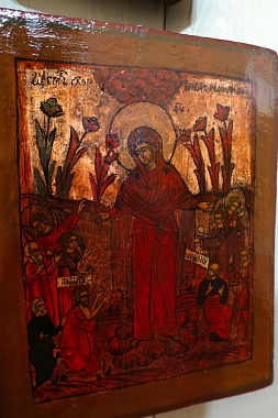 Еще интересны иконы праздничного ряда из этого же иконостаса, например, «Благовещение» или «Крестовоздвижение». Последняя – сейчас она на реставрации – с мельчайшей прорисовкой узоров золотом. Надеемся, икона «оживет» и мы ее также выставим. Хранится у нас необычная – восьмигранной формы – икона «Тайная Вечеря» из праздничного ряда этого же иконостаса. Все это уже можно увидеть.