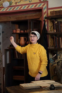 В экспозиции нашего музея много книг XVIII–XX веков. Они находятся в свободном доступе: в шкафах, в сундуках, на столе, на полках. Мы уже приняли несколько пробных групп, и опыт показывает, что люди открывают эти фолианты, начинают листать, читать, смотреть гравюры. Иконы у нас не под стеклом, они открыты и можно, подойдя вплотную, разглядывать все детали, что очень любят делать те, кто интересуется церковным искусством. В экспозиции огромное количество планшетов с архивными фотографиями и текстовой информацией. Сопроводительные тексты к экспонатам специально напечатали на пластике, устойчивом к многократному использованию. Еще у нас на особом подиуме создана реконструкция кельи святителя Димитрия с его подлинными вещами. На этом подиуме посетители, в том числе дети, могут сидеть, слушать рассказ экскурсовода.