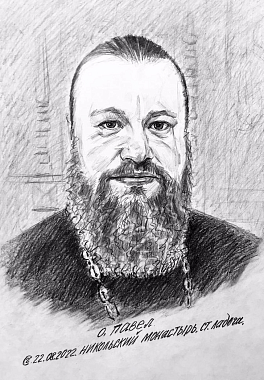 На портале «Монастырский вестник» мы старались показать разные стороны жизни возрождающейся Староладожской Никольской мужской обители. Это было отражено в публикациях: «Избрав путь следования за Господом, я ни разу не пожалел о своем выборе», «Святитель Николай: связующая нить времен», «Очень хочется, чтобы древние обители нашей Северной земли посещало как можно больше людей!». Рассказывали мы и о маме игумена Филарета, постриженной в монахини за несколько месяцев до ее злодейского убийства в кафедральном соборе Южно-Сахалинска в феврале 2014 года – «Никогда не поздно последовать за Христом без оглядки». Возвращаясь к началу нашего знакомства с батюшкой, вспоминаю его искренний рассказ о том, как услышав желание митрополита Санкт-Петербургского и Ладожского Варсонофия поставить его игуменом Староладожского Никольского монастыря, он отправился в Старую Ладогу, чтобы увидеть монастырь. А обратно возвращался с большими сомнениями: справится ли? Такие святыни – и такая разруха! Но что можно сказать сегодня? Что игумен и братия (слава Богу, принявшая нового настоятеля с открытым сердцем) подошли к 20-летию возрождения монастыря достойно. И несмотря на приход невероятно трудных для родного Отечества времен надежда спасти святыни, возведенные нашими предками на века, у них не угасает. Господь не оставляет монашеское братство. Буквально каждая лепта, по словам отца-настоятеля, имеет большую ценность. Думается, лептой в «монастырскую копилку» можно назвать и карандашные рисунки петербургского художника Георгия Смирнова: серию портретов братии и сюжеты из жизни обители, находящие отклик у тех, кто полюбил Никольский монастырь и живо откликается на всё доброе. Несколько рисунков мы решили разместить в галерее под интервью.