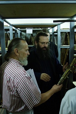 Что касается Церковно-археологического кабинета, нельзя не заметить: интерес к нему растет. За последние три года нас каждый год посещало от 22 до 23 тысяч человек. Много бывает монашеских групп, которые мы принимаем с радостью. Причем для монашествующих важно не только увидеть собрание икон, скульптуры, облачения, рукописные и печатные книги, полотна-шедевры русских художников, писавших на религиозные темы, но и ощутить себя частицей той могучей духовной семьи, которая бережно хранит преемство. Давайте посмотрим на это под таким углом зрения: монашеская жизнь сохранила преемство в молитве. Монахи сохранили традицию в иконописи, в церковно-прикладном искусстве. Историю тоже сохранили монахи!