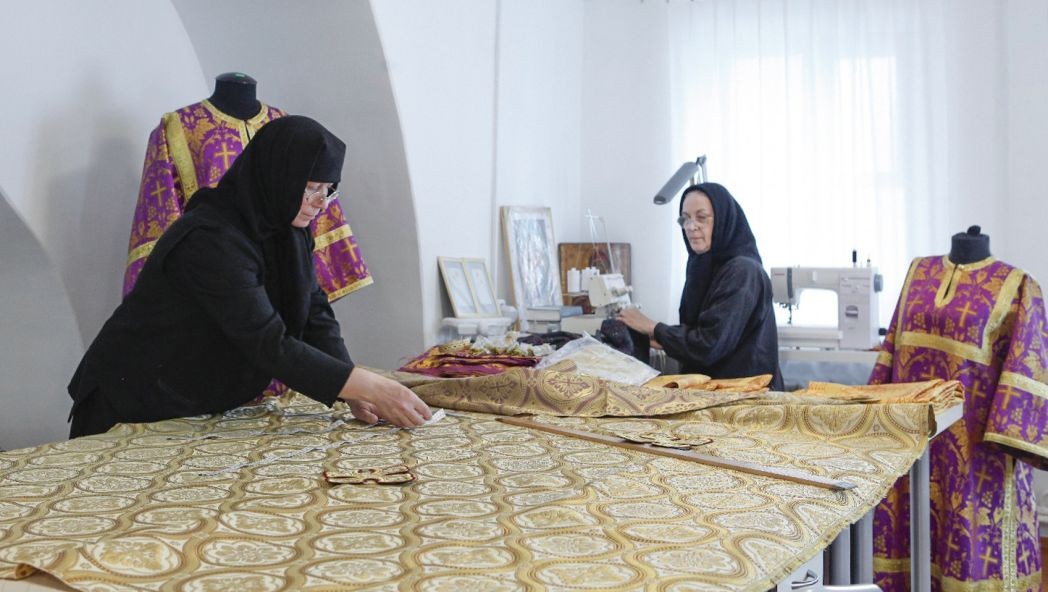 Касательно вашего вопроса о тех послушаниях, которые сестры несут в нашем монастыре, скажу, что навыки и умения каждой нельзя не учитывать. Музыкально одаренные сестры поют и регентуют. Прошедшие обучение иконописи, лицевому, золотому шитью и швейному делу трудятся в соответствующих мастерских: иконописной, реставрационной и мастерской лицевого и золотного шитья. Нельзя не сказать, что традиции лицевого золотного шитья были заложены в обители ее первоначальницей – преподобной Еленой (Девочкиной) и передавались монахинями из поколения в поколение.