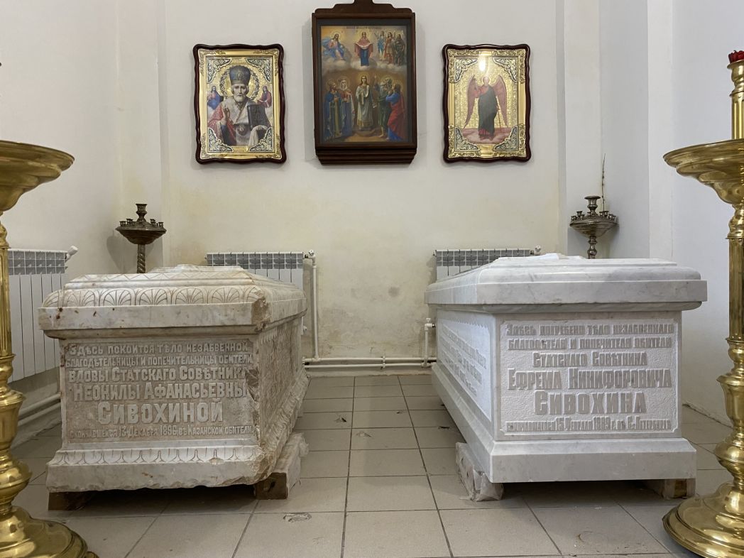 Ефрем Никифорович Сивохин – это замечательная личность. Не только для нашей обители он значим и дорог, но и для всей российской истории. Во всяком случае, для истории российской благотворительности. Судьба его действительно удивительна. Он прошел путь от крепостного крестьянина до статского советника, имел общение и совместную деятельность с представителями правительства и высшей российской аристократией. Для для каждой насельницы нашего монастыря Ефрем Никифорович близок и дорог, как и его супруга Неонилла Афанасьевна. Они покоятся здесь, у нас в обители. Сами приготовили себе место упокоении в колокольне, которая тоже построена попечением и на средства Ефрема Никифоровича и Неониллы Афанасьевны.