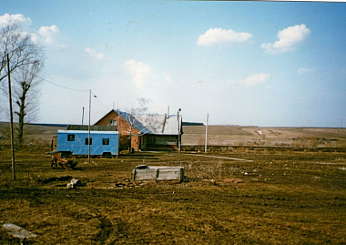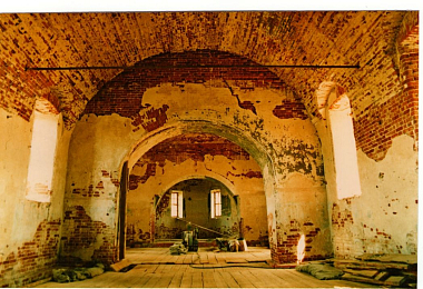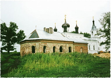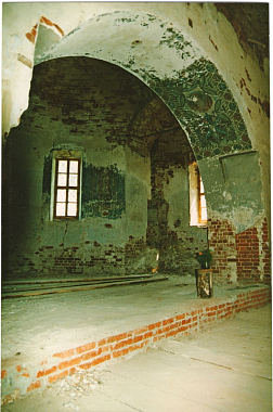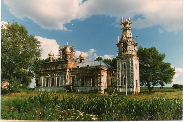 Здесь было полное бездорожье. На месте села – пустырь, два полуразрушенных храма и ни одного дома. Обвалившиеся стены, кучи кирпичей… Груды мусора были вынесены из церкви Архангела Михаила. Земляные работы осложнялись тем, что от прежних домов сохранилось множество ям, погребов и фундаментов. Ломалась техника, мы выносили камни и кирпичи со вспаханных огородов вручную. Других зданий, кроме храмовых, не было; мы поселились в деревянном вагончике. Везде – сорняки, а лопухи росли такие мощные, что их рубили топорами.