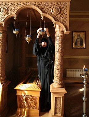 Пусть мы слабы и немощны, но к подвижническому идеалу старца Зосимы должны стремиться. Это сестрам не надо объяснять – они это понимают. А я благодарна Господу, что дал мне таких сестер. Хотя все, разумеется, разные – и по характеру, и по способностям, и по интересам. Но за минувшие годы я увидела, что их объединяет преданность Богу и святой обители, смирение и чувство ответственности. Если мне приходится отлучаться из монастыря – ехать, допустим, на собрание игуменов и игумений или по каким-то другим делам, душа моя спокойна. Знаю, что сестры не подведут. Кстати, когда тот батюшка, о котором я говорила, передавал нам дар афонитов – образ Божией Матери «Игумения Святой Горы Афон», наша обитель в тот момент переживала определенные трудности. И нестроения были, и искушения. Неудачи и промахи омрачали жизнь монашеской семьи. Торжественно встречая икону, мы сердцем чувствовали, что святыня пришла к нам с Афона как утешение. Очень ее полюбили. После полунощницы, монашеского правила берем благословение у Божией Матери возле икон с Ее Пречистым Образом «Одигитрия» и «Игумения Святой Горы Афон», затем сестры берут благословение у игумении. Когда совершались постриги, постригаемые подходили к этим двум иконам и просили благословения у Небесной Игумении. Такая традиция у нас сложилась.
