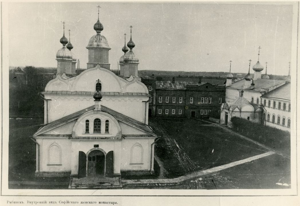 История обители насчитывает чуть больше полутора веков – закладка ее состоялась в 1860 году. Правда, первые насельницы отнюдь не сразу обосновались в Рыбинске. Еще в 1840-х годах девицы, желавшие богоугодной жизни, образовали общину в окрестностях Пошехонья, под окормлением старца иеромонаха Адриана. Потом сестринское общежитие перебралось за своим духовником в Мологу. А перед кончиной отец Адриан передал их иерею Петру, заштатному священнику Иерусалимской слободы, что в двух верстах от Углича. Юродствующий подвижник, в свое время претерпевший в подвиге много злоключений, уже славился тогда в народе как благодатный прозорливец. Сестрам пришлось выдержать еще пять лет «кочевой» жизни вне монастырских стен, пока старец не выбрал им и игумению (Антонию (Мезенцеву), бывшую на тот момент настоятельницей монастыря в Кашине), и место для строительства. Нашелся и главный благодетель – купец Андрей Иванович Миклютин, в буквальном смысле положивший в дальнейшем жизнь и состояние на благоукрашение обители. Помощь от других представителей местного купечества тоже была значительной: монастырь, не получая содержания из казны, существовал на проценты от пожертвованных капиталов. В результате с 1860 по 1864 год он был практически целиком отстроен, возведены два храма. Все последующие игумении счастливо сочетали духовные устремления с экономическими способностями и прекрасно управлялись с монастырскими землями, подсобными хозяйствами (скотный двор, конюшня), производством (хлебозавод и кирпичный завод). Были построены еще два храма. Сестры славились мастерством шитья и вышивки. Перед 1917 годом их было около двухсот в монашеском постриге, не считая послушниц и трудниц, и нередко из числа этих не только благочестивых, но и хорошо образованных насельниц выходили достойные игумении для новых обителей.