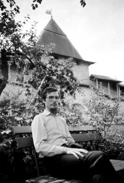 А весной 1990 года, предварительно спалив на костре во дворе дома все свои проекты, живописные картины, рисунки, фотографии, письма, с одной сумкой в руках и иконой Божией Матери «Черниговская-Гефсиманская», которую написал Великим постом специально для этого случая, я уехал в Псково-Печерский монастырь вместе со своим давним другом Дмитрием Сидоровым (игумен Мефодий, скоропостижно скончавшийся в 2014 году); он также окончил Строгановку по специальности «Художественная обработка металла» и был талантливым мастером-ювелиром.