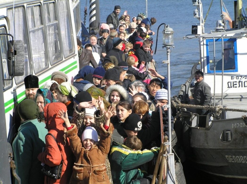 А вот животноводство стараемся развивать. Начинали в 2004 году с двух коров, Божией милостью нам пожертвованных. В 2007 году официально зарегистрировали крестьянско-фермерское хозяйство (КФХ), где я являюсь управляющим, и на сегодняшний день у нас 120 породистых коров, плюс нетель, быки, телки – в общей сложности где-то 150-160 голов крупного рогатого скота. Дважды мы получали господдержку по программе «Развитие семейных животноводческих ферм», и на полученные грантовые средства закупили молокопровод, доильную установку, танк-охладитель для молока. Изготавливаем сметану, масло, брынзу, творожные продукты, причем не только из коровьего молока, но и из козьего. Есть куры, петухи, индюки. Трудятся в скиту сельские жители. Трудятся и получают зарплату. Добавлю еще один штрих к нарисованной мной картинке: очень любят бывать здесь городские мальчишки и девчонки из воскресной школы. Приплыв сюда на пароме через реку Старая Волга, они присутствуют на Божественной литургии, а затем идут на холм к Поклонному кресту. Оттуда открывается великолепный вид на скит, на реку и окрестные просторы. Там дети могут побегать, посидеть у костра, поговорить по душам с батюшкой. Ну, и конечно, особую радость им доставляют, как тепло и образно написала Людмила Георгиевна Бухтоярова в книге, все эти рогатые, ушастые, мычащие и кукарекающие, мохнатые и пушистые обитатели Николо-Комаровского скита-подворья.