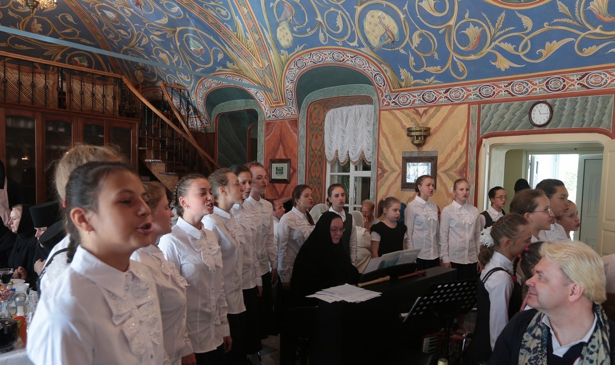 Там, где есть радость, расцветают таланты. Слаженно и проникновенно пели девочки из монастырского приюта уже после службы. А какой дивный концерт подготовили насельницы обители! Фортепиано, аккордеон, металлофон, барабаны, домра, дуклар, блок-флейта – все эти музыкальные инструменты были задействованы при виртуозном исполнении народной оперы «Квартал ангелов» Микиса Теодоракиса. И особое волнение вызвала исполненная ими песня «Я люблю тебя, Россия...» – песня о Родине, которая «веками непонятна чужеземным мудрецам». Слушая ее, нельзя было не вспомнить, что преподобный Стефан Махрищский был постриженником Киево-Печерского монастыря и оставил родную обитель в середине XIV столетия, когда там начались притеснения православных от униатов. Прошло столько веков, и снова Украина страдает. А Россия... По благословению Святейшего Патриарха Московского и всея Руси Кирилла во всех русских храмах возносится усиленная молитва о мире на Украине. «Ты добром своим и лаской, ты душой своей сильна», – пели сестры Стефано-Махрищской обители о стране, ставшей земным Отечеством небесного покровителя их монастыря...