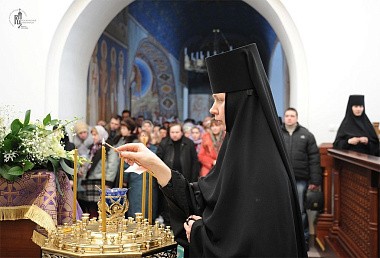 День начинается с молитвы: практически ежедневно в обители совершается Божественная литургия, на которой присутствуют все сестры, за исключением тех, кто готовит трапезу на кухне. Сестры участвуют в приготовлении трапезы по очереди, в остальное время они заняты на других послушаниях и в эти дни имеют возможность молиться за Литургией. По уставу утром у нас совершается полунощница, молебен преподобному Стефану Махрищскому, Литургия. Затем у сестер есть один час свободного времени, которое отводится на чтение какой-либо части келейного правила. Келейное правило сестер имеет основой правило Оптиной пустыни. Для монахинь – пятисотница, для инокинь – трехсотница, совершаемые по четкам, также чтение трех канонов и акафистов. В 10.30 в монастыре общая трапеза, после которой все расходятся на послушания. В 16.00 – вторая трапеза, в 17.00 – вечернее богослужение. В зимнее время в основном все послушания оканчиваются к 16.00, сестры имеют возможность помолиться за вечерним богослужением. В летнее время увеличивается число хозяйственных забот, поэтому уже не все могут быть на вечерней службе. Вечернее богослужение оканчивается около 20.30, сестры расходятся по кельям. В основном у нас живут по двое, за исключением некоторых монахинь, как правило, пожилых.