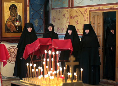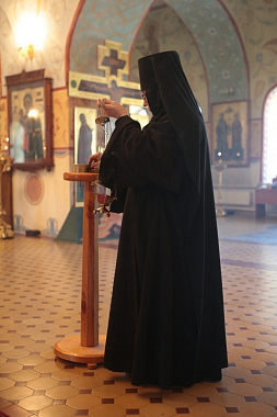 Клирос в нашей обители является постоянным общим послушанием – поют все, кто может, независимо от способностей, которые, вообще-то, есть у всех. Присутствуя на клиросе, легче всего научиться разбираться в церковном Уставе, молитва становится осмысленной.