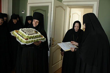 Одна из насельниц обители, монахиня Феонилла (Харченко), которая пришла сюда в числе первых сестер и по благословению вела монастырскую летопись, еще в прошлом году к 80-летию матушки Афанасии написала свои воспоминания. Частично мы дали их в материале «Главное в отношениях между игуменией и сестрами – матушкина молитва и взаимное доверие». Теперь решили включить в статью то, что тогда не вошло: «Вспоминать можно много и долго, можно писать мемуары – ведь уже 18 лет мы вместе, но хотелось бы выделить главное. Матушка не очень-то любила о себе рассказывать, конечно, по скромности и смирению. Но иногда открывала то, что полезно для души. Рассказывала о старце Феофане из Печор, в том числе о том, как он ей всё предсказал – и игуменство в Москве, и какой это будет для нее тяжкий крест. Еще о многом из жизни в Пюхтице рассказывала… И назидания давала, когда скорби наваливались: "Проще надо быть. Помоги тебе, Господи!" Но главное – она постоянно молилась за всех и за каждую сестру. Придешь, скажешь ей свои недоразумения, попросишь помолиться, а матушка в ответ: "Каждый день трижды на Псалтири поминаю, молюсь постоянно…" Это было и утешение, и образец одновременно. Раньше я постоянно к ней в келью заходила, как заведующая канцелярией монастыря, с документами на подпись, с вопросами. Иной раз она что-то скажет так строго, что закачаешься! Но тут же смягчится и уже ласково и по-матерински: "Ну, ничего, присядь, присядь, поговорим". Поначалу я недоумевала, почему она так, а не иначе поступает, ведь начальница!