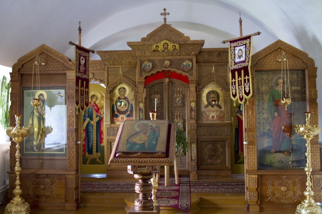 Ныне в приделе святого Иоанна Богослова замечательный резной иконостас, глядя на который, радуешься не только его красоте, но и стремлению людей внести свою лепту в благоукрашение Дома Божия, о чем рассказала матушка Раиса. История появления иконостаса такова: правящий архиерей Владимирской епархии владыка Евлогий совершал объезд епархии. В Знаменский монастырь он прибыл в сопровождении гостей и благословил матушку-настоятельницу рассказать им об истории монастыря. Когда она им поведала о том, как пришли в монастырь три иконы – «Господь Вседержитель», «Знамение» Божией Матери и Иоанна Богослова, – один гость настолько впечатлился, что попросил владыку благословить его сделать резной иконостас для монастыря. Владыка благословил, гость заказал и оплатил резной иконостас и иконы. Везя этот бесценный дар в машине из Владимира (машину тоже выделили бесплатно!), матушка всю дорогу думала, что велика милость Божия к ним, небольшой общине сестер, коль Господь посылает таких благодетелей...