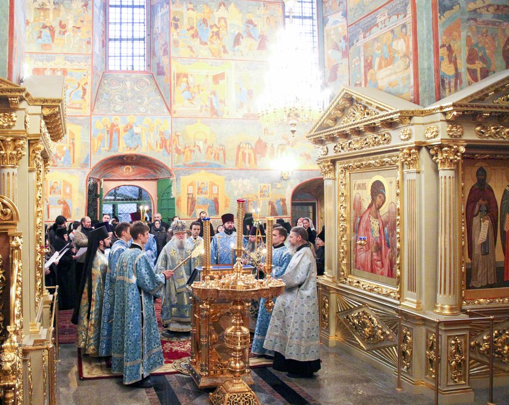 По окончании Божественной литургии и славления возглашается многолетие Святейшему Патриарху Кириллу, богохранимой стране нашей Российской, властем, воинству и народу ея, настоятельнице с сестрами обители и всем православным христианам. Матушка игумения поздравляет владыку, сестер и всех гостей обители. Владыка произносит назидательное слово. Затем монашеским строем с пением тропаря праздника мы идем в трапезную. Трапеза – продолжение богослужения. Во время трапезы назначенная сестра читает святоотеческое слово на праздник Введения. На праздничной трапезе бывает "велие утешение", – конечно, разумное и разрешенное уставом в дни Рождественского поста. Перед праздником мы закупаем рыбу, фрукты, печем пироги. Но сам праздник на трапезе ощущается не только потому, что столы полны вкусной еды (за что мы благодарим Бога и потрудившихся с любовию сестер), но в полной мере помогает его ощутить присутствие архипастыря, священнослужителей, почти всех насельниц обители и гостей-благодетелей, пришедших разделить с нами радость праздника. Сестры исполняют духовные песнопения в честь Божией Матери. По окончании трапезы под торжественный звон колоколов мы провожаем Владыку и расходимся по келиям (а кто отправляется на послушание), славя Бога и Пречистую Богородицу». Такой вот теплый подробный рассказ мы получили!