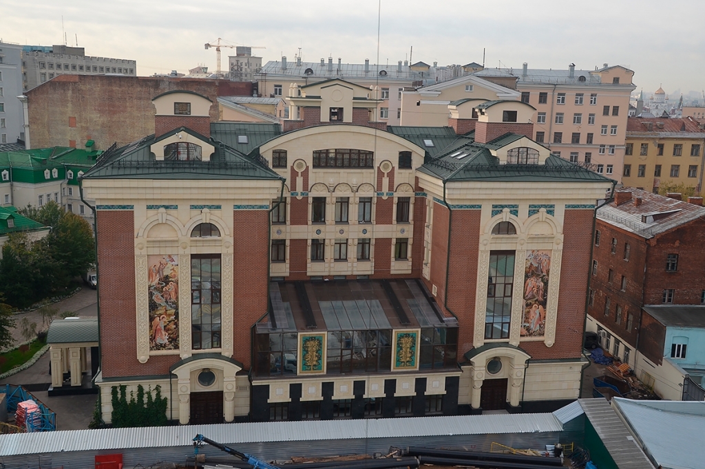 Снаружи стены нашей любимой семинарии украшают объемные орнаменты византийской традиции и удивительной красоты майоликовые панно: одно — исполненное на сюжет «Святой Пророк Божий Иоанн Предтеча — Ангел пустыни», другое — посвящено священномученику Илариону (Троицкому), покровителю монастыря и семинарии. И то, и другое рассказывают о восхождении к Богу.