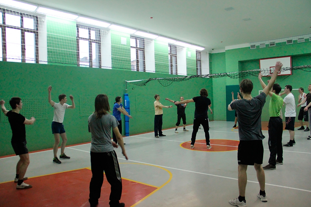 Напротив актового зала — спортивный сектор. Здесь вполне можно поддержать себя в тонусе и хорошенько размяться после учебного дня, проведенного над книгами. Ребята тренируются в тренажерном зале, играют в футбол, баскетбол, волейбол, занимаются кикбоксингом и другими видами спорта.