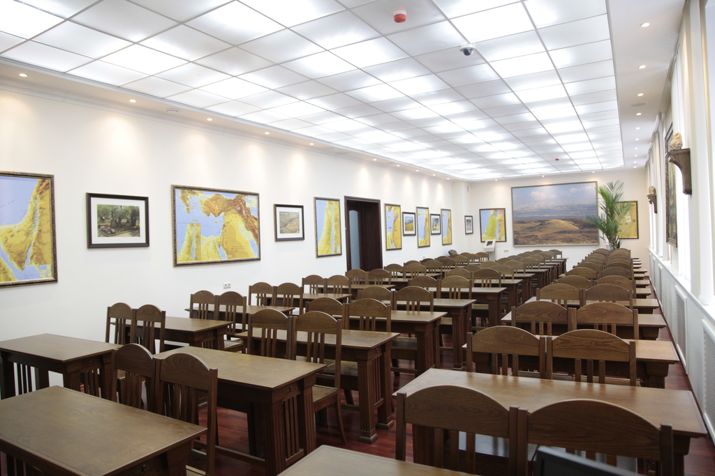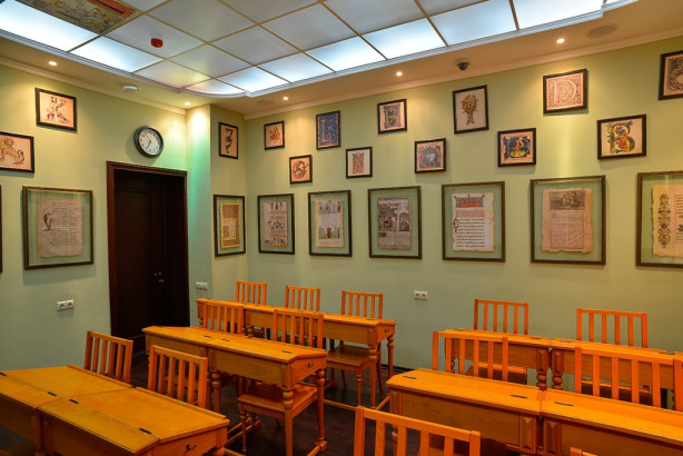 По стенам аудитории «Языки» — копии древних манускриптов: Евангелие на древнегреческом, письмена на латинском и старославянском, арабская вязь. Каждый добросовестный семинарист, выбравший тот или иной язык, обязательно разберется в них.