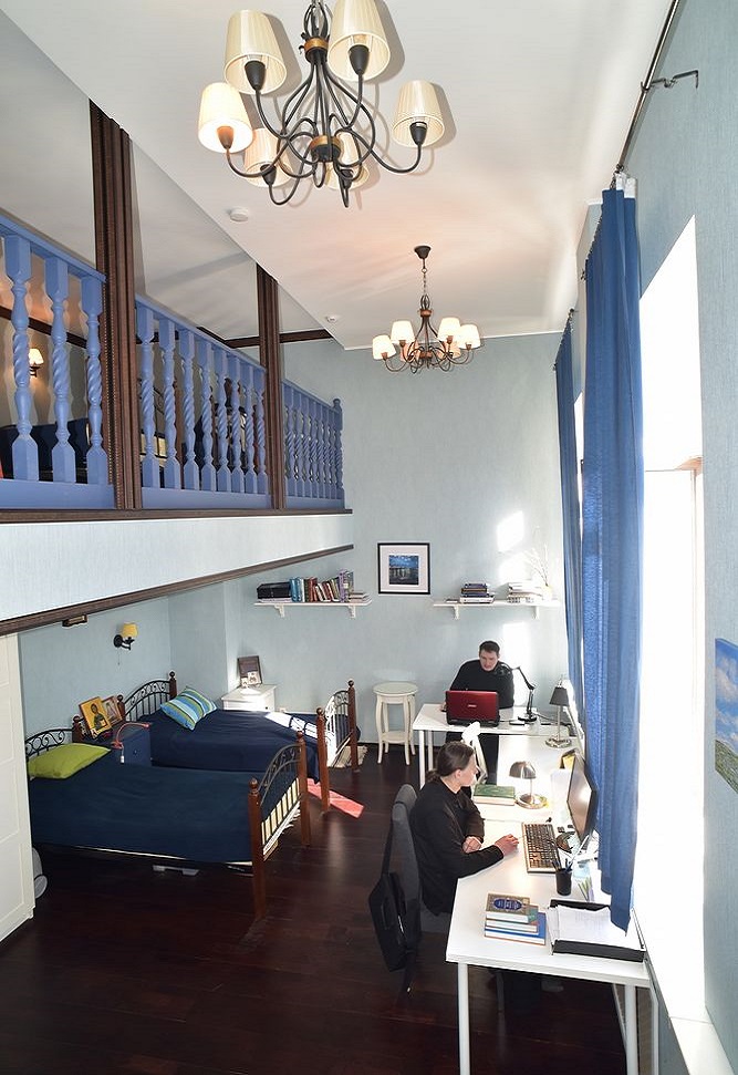 Живем мы в кельях, вмещающих от двух до шести человек. Некоторые кельи — двухъярусные, с устроенными антресолями. Это очень удобно — можно жить и отдыхать на втором этаже, а готовиться к занятиям ‒ на первом.