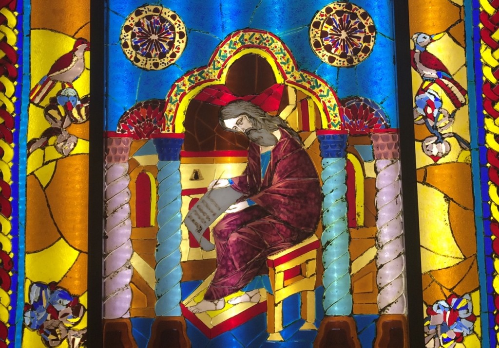 У кабинета ректора лучше замедлить ход, чтобы полюбоваться удивительными витражами работы художника Сергея Николаевича Андрияки, выполненными специально для нашей семинарии.