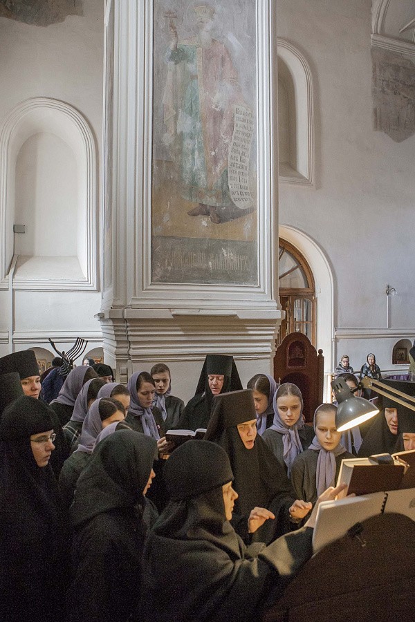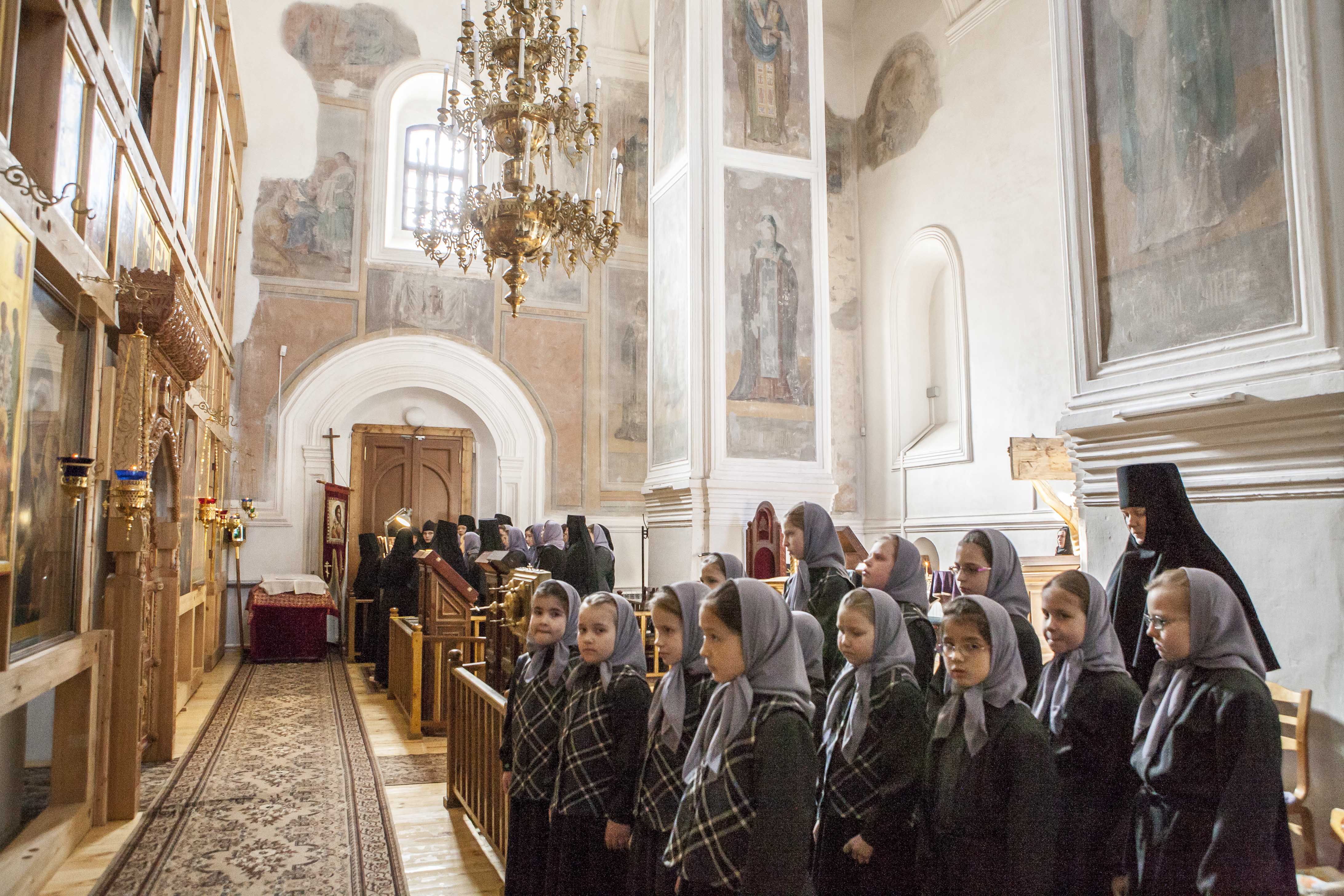 В монастыре с самого первого дня было правилом полностью совершать суточный богослужебный круг. Все сестры, не занятые на неотложных послушаниях, молятся в храме на Литургии.