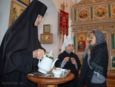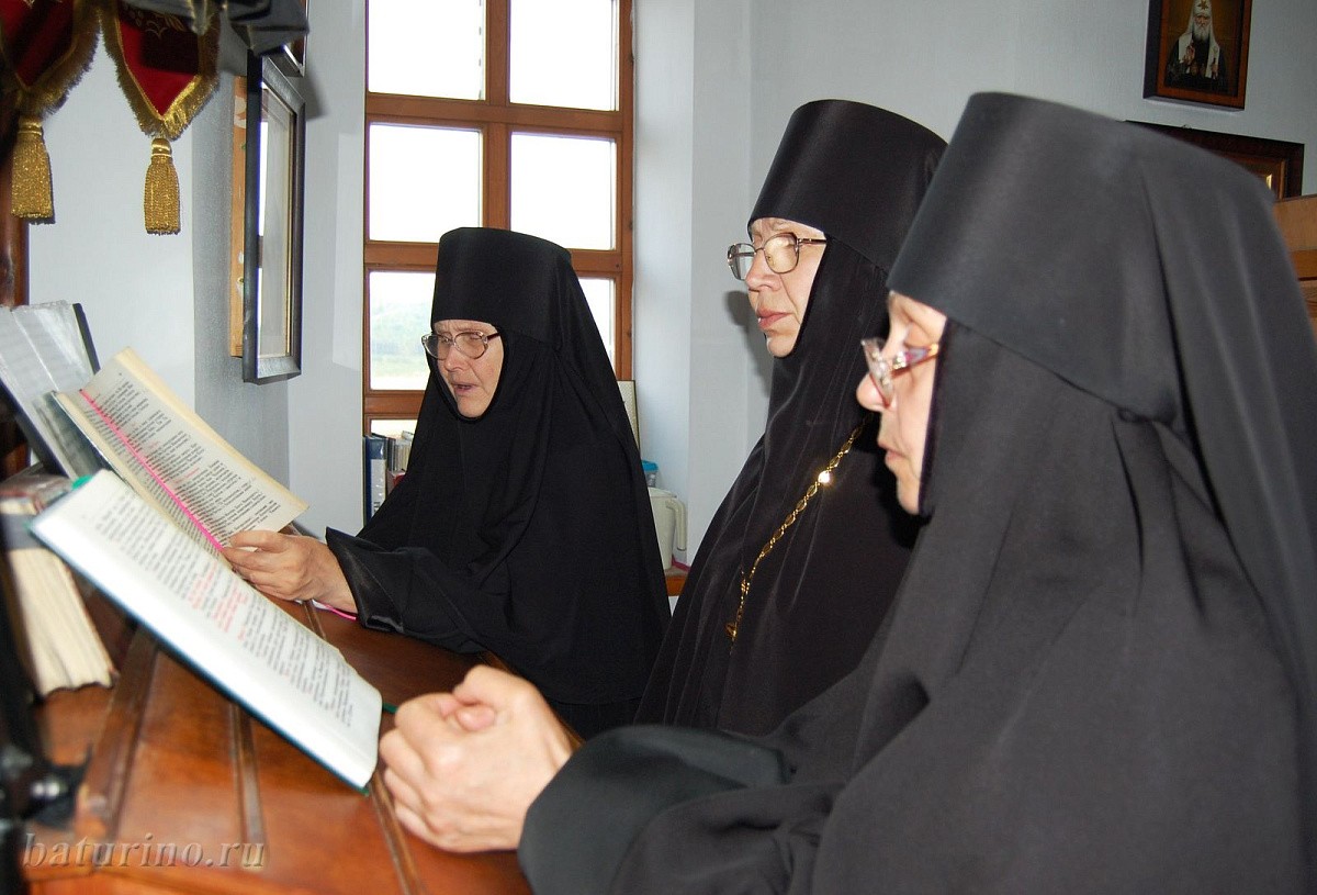 Обустраивать монашескую жизнь начали четыре девушки, которым пришлось осваивать монастырский устав одновременно с разбором груды строительного мусора. «Помню, сидим на бревне, вокруг грязь, остатки фундаментов, а так хорошо на душе…», – вспоминала впоследствии одна из монахинь. 18 декабря 2000 года в батуринской обители состоялся первый монашеский постриг. Сейчас в обители около тридцати сестер – монахини, инокини, послушницы, есть трудницы. Заведено основательное хозяйство, и помимо храмовых послушаний у насельниц много забот в трапезной, на огороде, на скотном дворе.