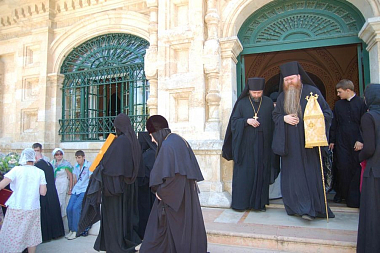 Мне почему-то запомнились две его проповеди: первая – на отпевании одной из старейших монахинь Гефсиманской обители монахини Магдалины, с которой владыка находился в тесной дружеской связи. В своем слове владыка тогда провел параллель неизбежного ступенчатого развития мирских и монашествующих: как в миру рождаются девочки, становятся девушками, потом матерями, так и в монашестве – послушницы, инокини и матери; задача и цель на каждой ступени, говорил владыка, – развиться полноценно в том или ином выборе, чтобы принести добрые плоды Церкви и обществу.