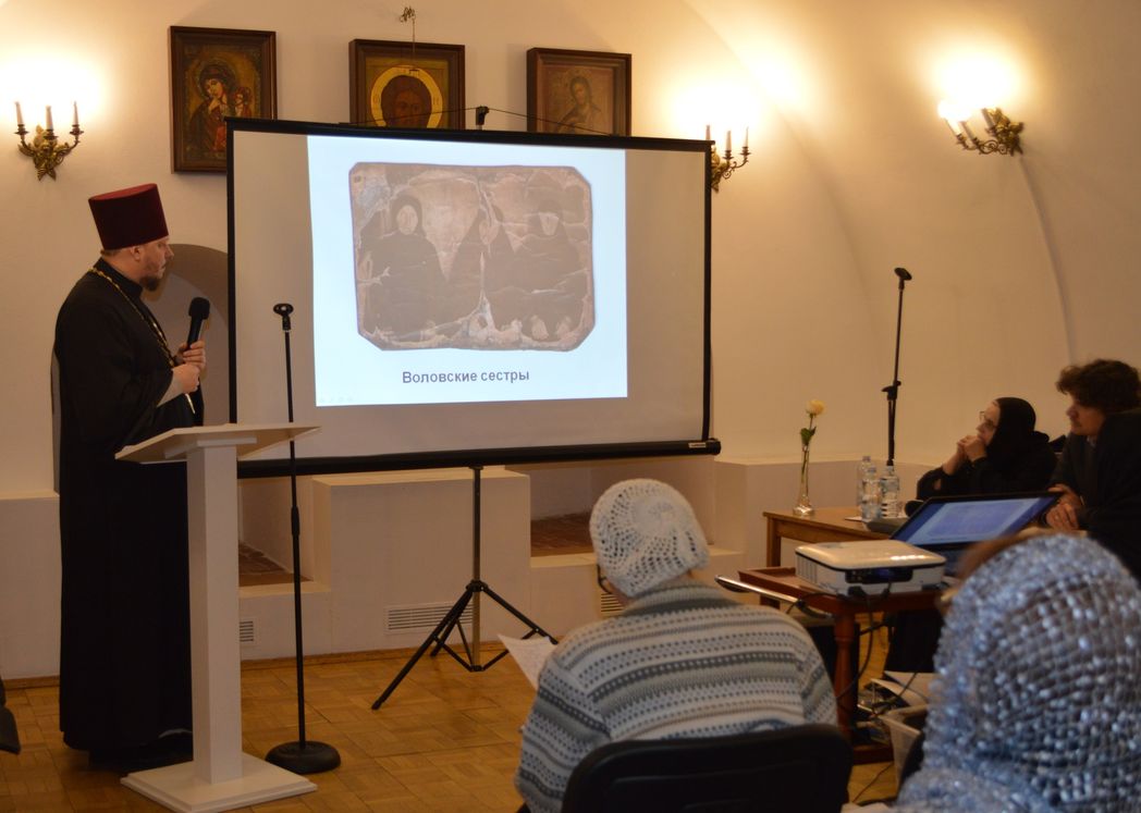 Большую работу с источниками по истории обоих монастырей уже многие годы ведет доктор филологических наук В.В. Каширина. Варвара Викторовна, выступившая вслед за владыкой Иосифом, рассказала о новых находках из истории обители предыдущих эпох в докладе «Игумен Макарий (Каменецкий) и старец Арсений Младший (Кириллов) как представители ближнего круга старицы Досифеи». Собственно, речь шла об атрибуции рукописных источников.