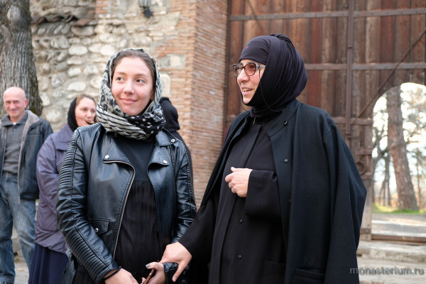 В монастыре подвизается 15 сестер, еще две сестры несут послушание в митрополии и три – на подворье. Таким образом монашеская семья насчитывает 20 человек. После обеда те, кто находится в обители, собираются вместе для духовного общения с матушкой-настоятельницей. Даже в Типиконе записано, что никто пусть не позволит себе в это время пропустить беседу с настоятельницей. Одна из основных тем бесед – духовная брань, происходящая с человеком на путях спасения души. Слава Богу, сейчас доступно много источников, дающих духовную пищу для обсуждения вопросов борьбы со страстями, греховными привычками и наклонностями. И в последнее время для монашествующих одним из таких источников стали выступления архипастырей и пастырей, игуменов и игумений (в том числе и гостей-святогорцев) на Международных Рождественских образовательных чтениях в Москве, в которых схиигумения Иоанна тоже принимает участие. Кстати, сестрам, знающим русский язык, она раздает тексты выступлений, звучавших на Чтениях. Тем, кто не знает, излагает их суть на грузинском. Часто пересказывает материалы из журнала «Монастырский вестник». Чувствует, что сестрам это интересно, что для них это важно. Готовясь к беседам с сестрами, матушка Иоанна также выбирает из огромного информационного потока необходимую информацию. Ведь нельзя не учитывать, что насельницы монастыря – это современные люди, вышедшие из мира с большим информационным багажом. И о событиях, происходящих в родной стране, о событиях в России им хочется знать. Обсуждается во время такого теплого, в полной мере можно сказать, семейного общения и вопрос создания небольшого монастырского музея, призванного рассказать не только об истории древней обители, но и об истории российско-грузинских отношений сквозь призму их христианского понимания. Наши страны, объединенные общей верой, пережили разные этапы этих отношений – и хорошие, и грустные, о чем, по убеждению схиигумении Иоанны, надо говорить откровенно, чтобы взгляд на историю был непредвзятым и объективным. И тогда «зомбировать» людей, манипулировать их сознанием будет сложно.