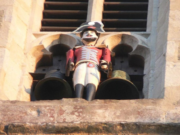 д. Фигурка «гренадера» по имени «Quarter Jack», установленная на внешней стене более поздней башни. Он отбивает четверти на часах, ударяя в два маленьких колокольчика. Первоначальная фигурка монаха была заменена на гренадера во время Наполеоновских войн.