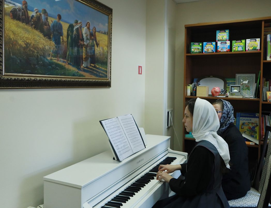 «Утром после подьема в 7 часов – утренние молитвы; кто идет на службу, встают раньше. Затем завтрак и занятия, – обьясняет монахиня Паисия. – Пары с половины девятого до половины второго. Три раза в неделю хор, хоровое дирижирование, после занятий матушка благословила частные занятия фортепиано. Потом, чтобы сделать перерыв, монастырские послушания. Час или полтора. Уборка в храме, бытовые дела. Затем начинается время для выполнение домашних заданий. Вечер завершается молитвенным правилом».