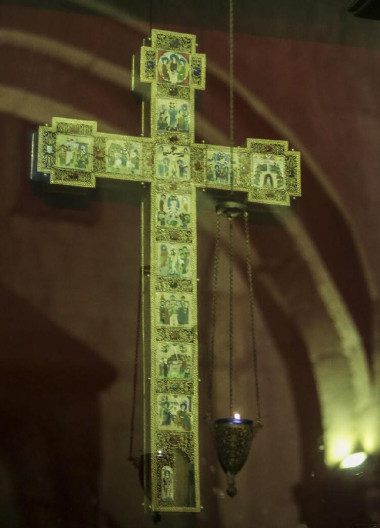 В этом убежден наместник монастыря в честь святого великомученика Георгия Победоносца, настоятель кафедрального Патриаршего собора Светицховели архимандрит Серафим (Чедия). Почему? Потому что город Мцхета, расположенный неподалеку от Тбилиси, был древней столицей Грузии, и его из-за большого количества святых и культовых мест многие христиане именуют «Вторым Иерусалимом». Здесь хранится одна из величайших святынь христианского мира – Хитон Господень, и сюда принесла благую весть святая равноапостольная Нина (Нино Каппадокийская). Официальное название кафедрального собора – собор во имя Двенадцати апостолов Христовых. А второе – Светицховели – переводится как «Животворящий столп». Немногочисленная братия новообразованного монастыря, появившегося около 25 лет назад, объясняет паломникам, откуда такое светлое, жизнеутверждающее название взялось, что за ним стоит.