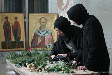 С большой теплотой и, смею утверждать, с каким-то внутренним восторгом рассказывала Елена, как ее дети вместе с другими ребятишками под руководством инокини Параскевы участвовали в росписи Никольского храма. Причем старшие даже под куполом центрального престола в честь Вознесения Господня трудились! Так вместе, сообща, сестры и миряне, готовили храм к масштабному торжественному событию, состоявшемуся недавно, 7 мая. Хочется добавить, что иерей Владимир Постников в этот день был удостоен возведения в сан протоиерея. Именно отца Владимира, по словам сестер, можно считать первым «монастырским» переселенцем. Он переехал сюда из столицы с матушкой Надеждой в самом начале, и на его глазах, с его участием происходило зарождение монашеской общины, ее становление и преобразование в монастырь. Ставропигиальный.