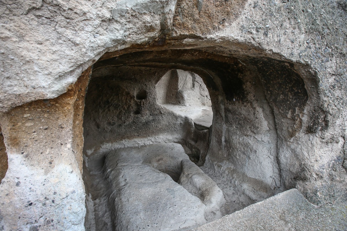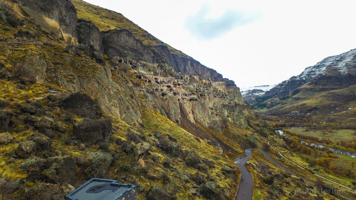 История монастыря берет свое начало в XII веке, когда грузинский царь Георгий III понял, что для защиты Грузии ему необходимо иметь на границе с Персией и Турцией хорошо укрепленную крепость. Он долго искал подходящее место, и Господь привел его к горе Эрушети (Медвежья гора). Ее отвесная стена, обращенная к долине реки Куры, была сделана из туфа (легкая и пористая горная порода – Ред.) и идеально подходила для создания подземного города. По приказу царя в Эрушети начали вырубать пещеры. Причем делали это поистине с царским размахом! Вдоль берега реки в сердце горы прорубили свыше 600 помещений, связав их между собой запутанными ходами и галереями. Из подземного города-крепости на поверхность вели лишь три скрытые от глаз входа. При необходимости долгую осаду под горой могли бы выдержать порядка 20 тысяч человек! Здесь всё было приготовлено для нормальной жизни: помещения для сна и отдыха, хранилища еды и резервуары с водой, трапезные, бани, библиотеки…