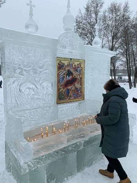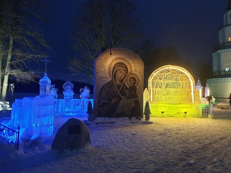 Рассказ о внешней, рукотворной красоте в монастыре будет неполным, если не упомянуть скульптуры, которые можно увидеть и на территории обители, и на подходе к ней. Два скульптора, Владимир Савельев и Анатолий Винокуров, став послушниками Раифы и получив от архимандрита Всеволода благословение на труды по их профессии, сумели придать неповторимость этому месту. Владимира Савельева, заслуженного художника Республики Марий Эл, не стало чуть больше года назад, но его скульптуры – «Святая преподобномученица Елисавета Феодоровна, «Ангел», «Преподобный Серафим Саровский», серия мраморных барельефов «Четыре евангелиста» на стене храма Грузинской иконы Божией Матери (за что он был удостоен Национальной премии в области декоративного искусства «Русская галерея – XXI век») и многие другие продолжают свидетельствовать о таланте умельца, данном Творцом. Анатолий Винокуров, помимо скульптур, делает декоративные фонтаны, каменные цветы и вазы, украшающие монастырскую территорию. И традиционно накануне праздника Крещения Господня он участвует в создании шедевров из льда (ныне первую часть ледового городка – наземную – открыли раньше, 2 января. И тематика в 2020 году – лики святых. Послушник Анатолий создал образ Святителя Николая с посохом).