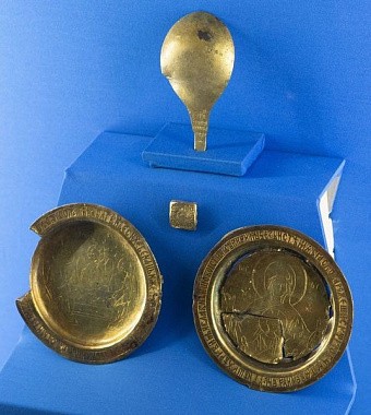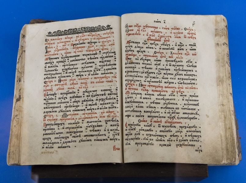 На первом этаже музея (точнее – полуподвальном), расположен уникальный макет монастыря в древности. На нем можно увидеть еще старые, не перестроенные храмы. И колокольню на том месте, где она была раньше. И корпуса братских келий в дальнем углу монастырской территории. Сейчас многое географически поменялось… А в нишах этого круглого зала находятся такие раритеты, которые вызывают душевный трепет. Самый древний из них – двухстворчатая панагия митрополита Лаврентия конца XVII века, вскрытая то ли консервным ножом, то ли просто острым ножом: видимо, богоборцы искали в ней драгоценности. По рассказу отца Гавриила, есть серьезное исследование, где рассматривается вопрос, что митрополит Казанский и Свияжский Лаврентий (он не только дал благословение на основание монастыря, но и принял самое живое участие в деле его устроения) носил древнюю панагию – возможно, что даже XIV века. Дальше – подлинное издание толкования святителя Андрея Кесарийского Апокалипсиса (Откровения святого апостола Иоанна Богослова), относящееся к первой половине XVII века. Оно украшено цветными гравюрами, и подсветка ниши усиливает впечатление. К слову, о трудах святых отцов и учителей Церкви. В Житии преподобного Иоанна Лествичника говорится, что знаменитую «Лествицу» – руководство для восхождения к духовному совершенству – святой, управлявший в то время монастырем, написал по просьбе собрата – игумена из Раифского монастыря, обратившегося к нему от лица всех иноков своей обители.