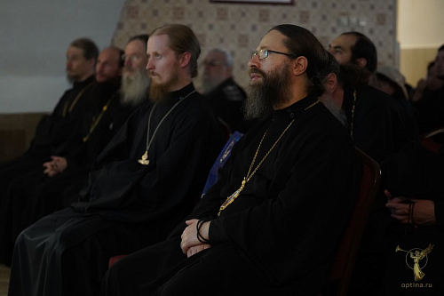 После знакомства с новым наместником, воодушевленные продолжительной беседой, участники «Оптинского лектория» пожелали владыке Иосифу помощи Божией в управлении этим древним монастырем с глубокими традициями старчества, которое, как мы знаем, стало поистине феноменальным духовным явлением в жизни России, начиная с первой половины XIX века. Добавим: и где во второй половине XIX века и в начале XX столетия подвизался преподобный Иосиф Оптинский, в честь которого епископ Можайский Иосиф был пострижен в монашество в Свято-Пафнутьевом Боровском монастыре. На протяжении тридцати лет старец Иосиф (Литовкин) являлся келейником преподобного Амвросия Оптинского, его «правой рукой». Кроткий молитвенник-прозорливец он удостоился неоднократного посещения Царицы Небесной, и Божия Матерь называла его «любимче мой». Служить на месте подвижнических трудов своего Небесного покровителя! Вероятно, осознание этого помогло епископу Иосифу приступить к столь ответственному послушанию не только с душевным трепетом, но и с глубокой надеждой, что преподобный Иосиф Оптинский, взирая на его труды, видя его устремления, не оставит его.