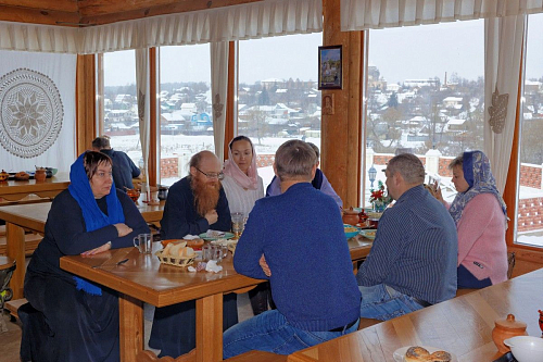По мнению владыки Иосифа, спасению мирян может помочь и создание православных общин, крепких православных приходов, где люди не просто бывают на богослужениях в храме, но и духовно общаются между собой, помогают друг другу морально и физически. Образец такой общины, получившей в свое время благословение святителя Тихона, Патриарха Московского и всея Руси, показал святой праведный Алексий (Мечев). При московском храме святителя Николая в Кленниках пастырь создал удивительный «монастырь в миру». По свидетельству епископа Иосифа, ему известны также и современные приходы, в которых создаются общины, как он сказал, с сильным духом, духом единения христиан. В контексте этой темы прозвучал вполне резонный вопрос одного из насельников обители: каким наместнику Оптиной пустыни видится участие современного монашества, монастырских духовников в подобных начинаниях? (Вторая часть обращения к владыке содержала просьбу поделиться своим опытом созидания подобной общины в селе Высоком, на подворье Свято-Пафнутьева Боровского монастыря). Отвечая, наместник обозначил два аспекта. Первый: монах ушел в монастырь, он отрекся от мира, от всего мирского и оно будто бы не должно его беспокоить. Но и второй аспект никак нельзя проигнорировать: миру требуется духовная помощь. Сегодня – особенно. А физически приходских священников, которые могут окормлять верующих людей, не хватает, поэтому может ли монах замыкаться в стенах монастыря? К примеру, на тех же подворьях Оптиной пустыни – в Москве и в Санкт-Петербурге – братии приходится выполнять это непростое послушание, быть в миру. Трудно, конечно, им приходится, но есть цель, есть от этого польза мирскому человеку.