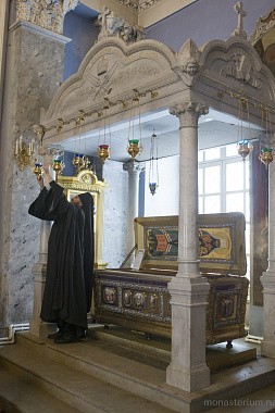 Другая грань той научной работы, которая основательно, кропотливо ведется в обители, была раскрыта в докладе ее наместника игумена Августина (Неводничека) «Память сердца: имена настоятелей и братии Спасо-Яковлевского монастыря в исторических документах». Отец Августин высказал свое убеждение, что одним из видов молитвы современных монашествующих должна стать неустанная молитва о тех, кто жил в монастыре прежде, – о братии и настоятелях. Имена последних известны – игумены, архимандриты, епископы. Некоторым из них посвящены отдельные статьи, даже книги. Многое также известно и о старцах-духовниках Амфилохии и Пахомии. Но рядовые насельники, за редким исключением, по сей день остаются безымянными. К счастью, в значительной мере сохранился исторический архив монастыря: основная часть – в Москве и другая часть – в Ростове Великом. В различных документах (именных перечнях и списках, формулярных ведомостях, персональных делах, монастырском синодике) можно найти имена монахов. В некоторых же документах содержатся не просто имена, а биографические сведения о насельниках, живших в обители в прежние века. «Работа по выявлению имен не ограничивается сугубо историческим исследовательским интересом. Это не сухая абстрактная наука, а живая память. Это получаемая нами возможность отдать дань памяти тем, кто жил и трудился, молился здесь в нашей обители до нас», – заключил игумен Августин. К словам докладчика можно добавить: а также появляется возможность отдать дань памяти тем, кто благоустраивал храмы и монастыри, сердцем воспринимая благотворительность как путь ко спасению души, чему блестящих примеров в императорской России не счесть. Один из них глубоко и ярко был раскрыт в докладе епископа Воскресенского Саввы, доктора церковной истории, первого заместителя управляющего делами Московской епархии, наместника Новоспасского ставропигиального мужского монастыря в Москве. Доклад «Благотворительность как пример нравственного служения обществу: Шереметевские храмы Новоспасского и Спасо-Яковлевского монастырей» написан в соавторстве с А.Е. Виденеевой, кандидатом исторических наук, старшим научным сотрудником исторического отдела Государственного музея-заповедника «Ростовский кремль». Алла Евгеньевна зачитала его на заседании круглого стола, и личность одного из крупнейших благотворителей своей эпохи – графа Николая Петровича Шереметева – словно бы предстала перед собравшимися во весь рост. На месте обветшавшей Знаменской церкви в Новоспасском граф, аристократ, глубоко верующий человек возвел каменную. Поставил ее над гробами своих родителей. В Ростове Великом полностью на его средства был возведен Димитриевский собор в честь почитаемого им, особо любимого святого – Димитрия Ростовского. (Этот собор и поныне является красой и гордостью обители). Позже замечательным подарком монастырскому собору стал величественный иконостас – уже от сына графа Шереметева Димитрия, которого отец так назвал в честь Святителя.