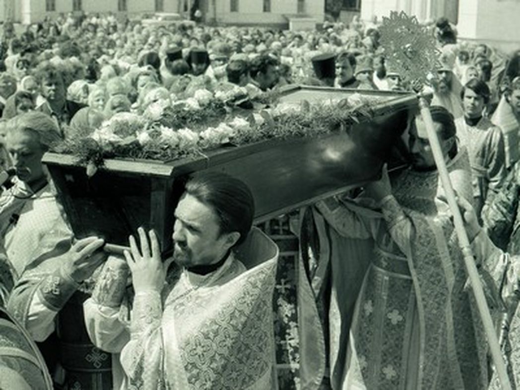 Возвращаясь к истории перенесения мощей преподобной Евфросинии, хотелось бы отметить и то, что святая пробыла на родной и любимой земле лишь до 1915 года, – с владыкой Иннокентием Полоцкие земли покинула и их покровительница. Во время Первой мировой войны, в 1915 году, в связи с приближением к Полоцку линии фронта Священный Синод распорядился о срочной эвакуации мощей преподобной Евфросинии в Ростовский Богоявленский Авраамиев монастырь. Вместе с мощами преподобной в Ростов Великий отправились сестры Спасо-Евфросиниевского монастыря во главе с игуменией Еленой (Волковой). Мощи преподобной удалось вернуть в Спасский монастырь лишь к 1921 году. Но на этом испытания не закончились. 13 мая 1922 года по постановлению Народного комиссариата юстиции РСФСР совершилось кощунственное вскрытие мощей преподобной (первое вскрытие было совершено в 1919 году в Ростове). И это было лишь началом безбожной «повестки». Вновь последовали странствования… Страдал от безбожной власти полоцкий архипастырь, страдала от ее кощунственных глумлений и святая княжна. Вскоре мощи преподобной Ефросинии перевезли в Витебский губернский историко-археологический музей, в котором они с целью антирелигиозной пропаганды были выставлены рядом с атрибутами других религий. Вплоть до 1941 года мощи святой княжны перемещали из одного атеистического музея Белоруссии в другой. В августе 1941 года святыня была перенесена верующими в Витебскую Свято-Покровскую церковь, а спустя два года, когда началось возрождение Спасо-Евфросиниевского монастыря, монашествующим удалось добиться разрешения немецкого командования на возвращение нетленных мощей святой подвижницы в ее родную обитель. После этого святотатственным намерениям советской власти Господь уже не дал осуществиться. В 1960-х годах, когда Полоцкую обитель закрыли, мощи преподобной оставались в древней монастырской церкви Спаса, переданной на попечение приходской общины. В 1998 году монастырь вернули Церкви, и впервые во вновь открывшейся обители совершилось освидетельствование мощей преподобной Евфросинии.